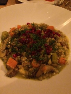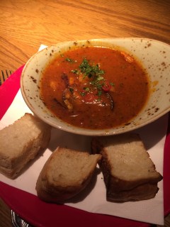My bowl of veggie soup arrived with a load of crusty bread. For £11, it was absolutely delicious, packed with lots of vegetables – and one of the cheaper meals we had!