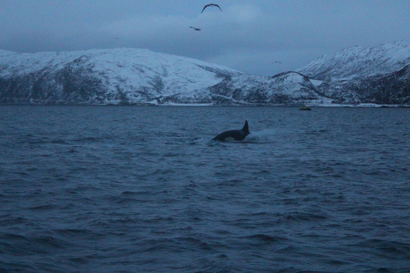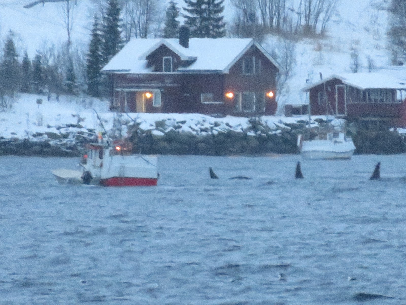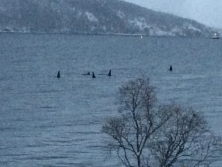 We spent the morning driving, stopping for photos, driving to another fjord, repeat. The views were just stunning – breathtaking. When we got to kattfjord, Anna started squealing – why? Whales!! We saw a massive pod of orcas!! Apparently seeing so many, so close to the shore is very rare – she called it the viewing of the season – and who are we to complain!
