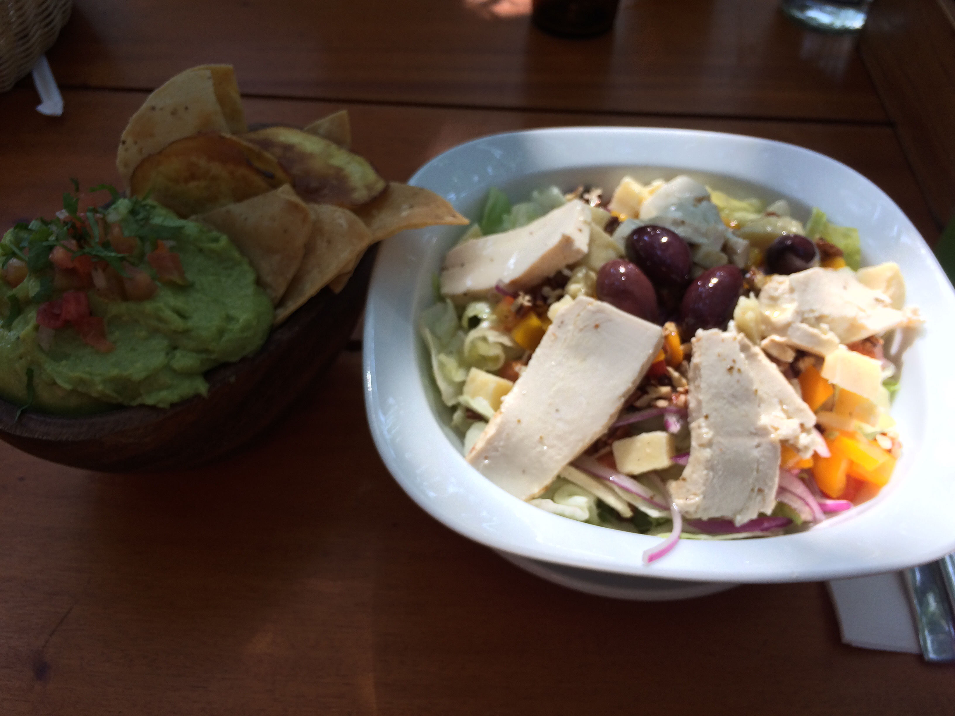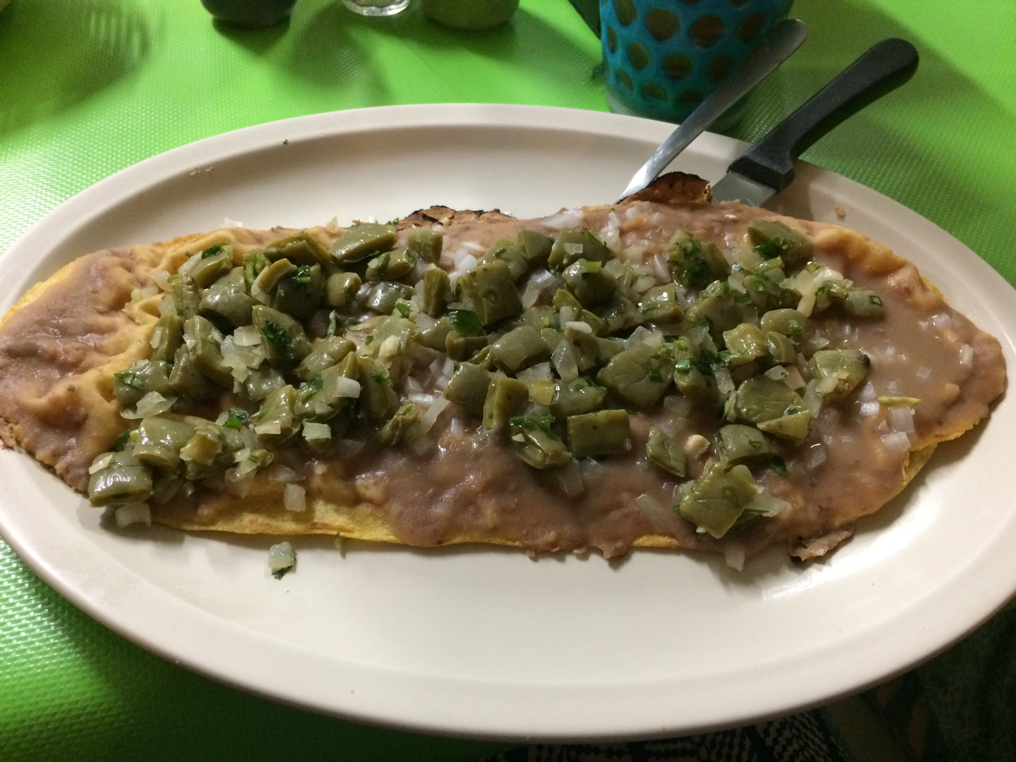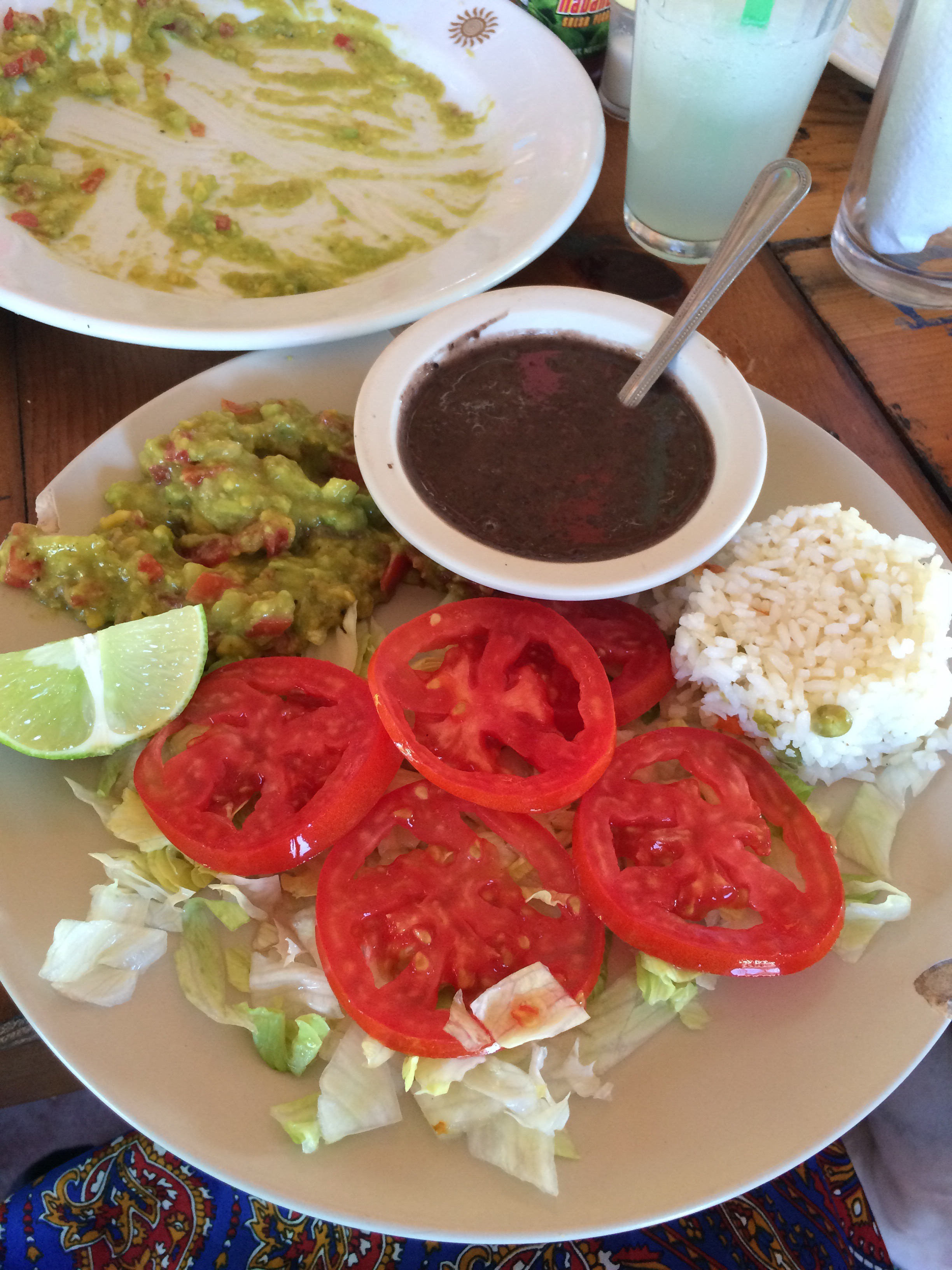 First night dinner – I went for guacamole and salbutes, topped with soya mince, frijoles, radishes, tomatoes, lettuce and avocado.