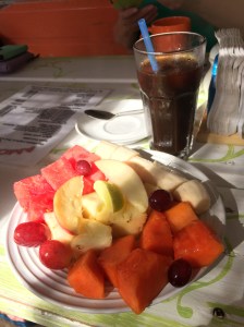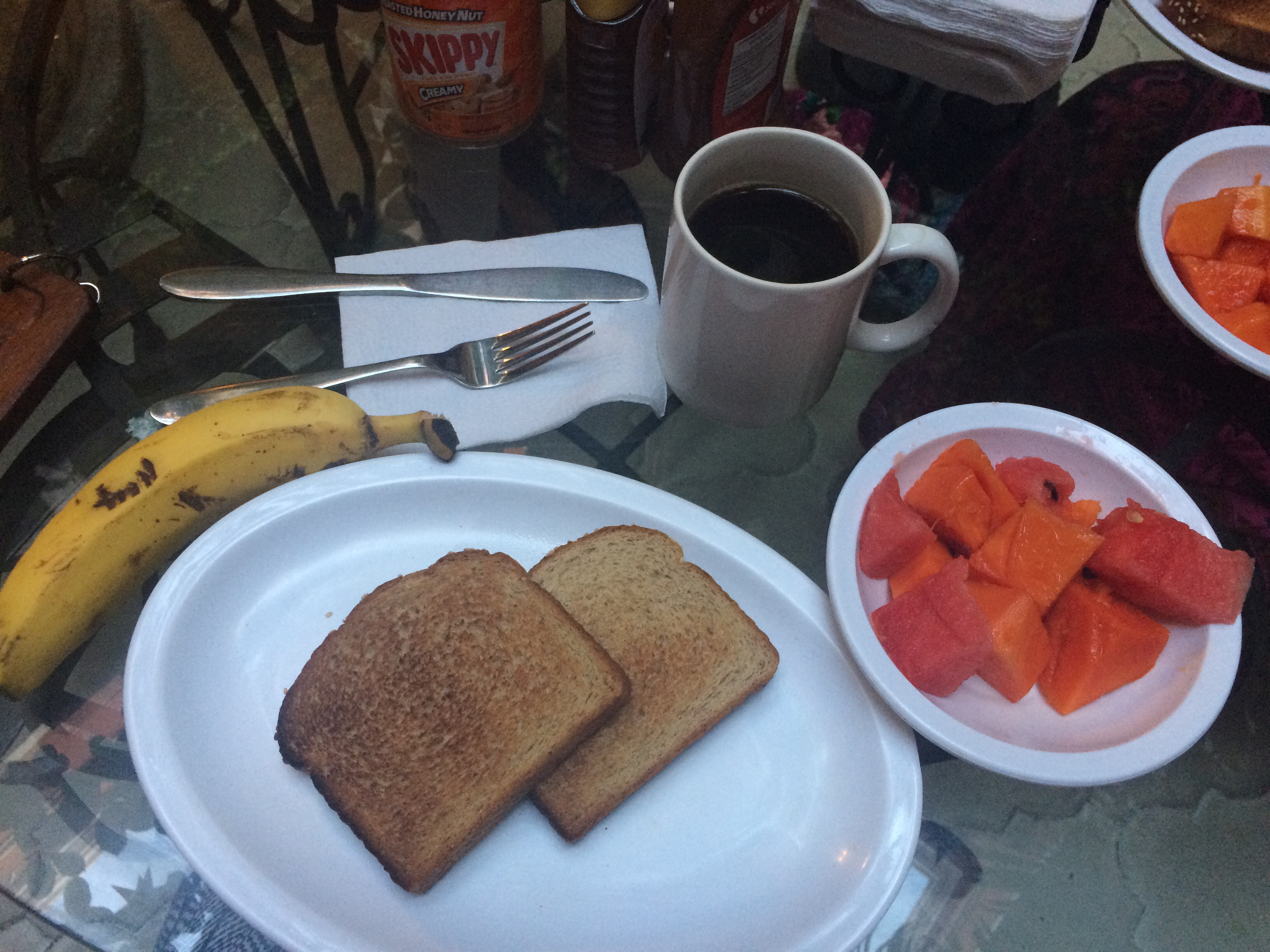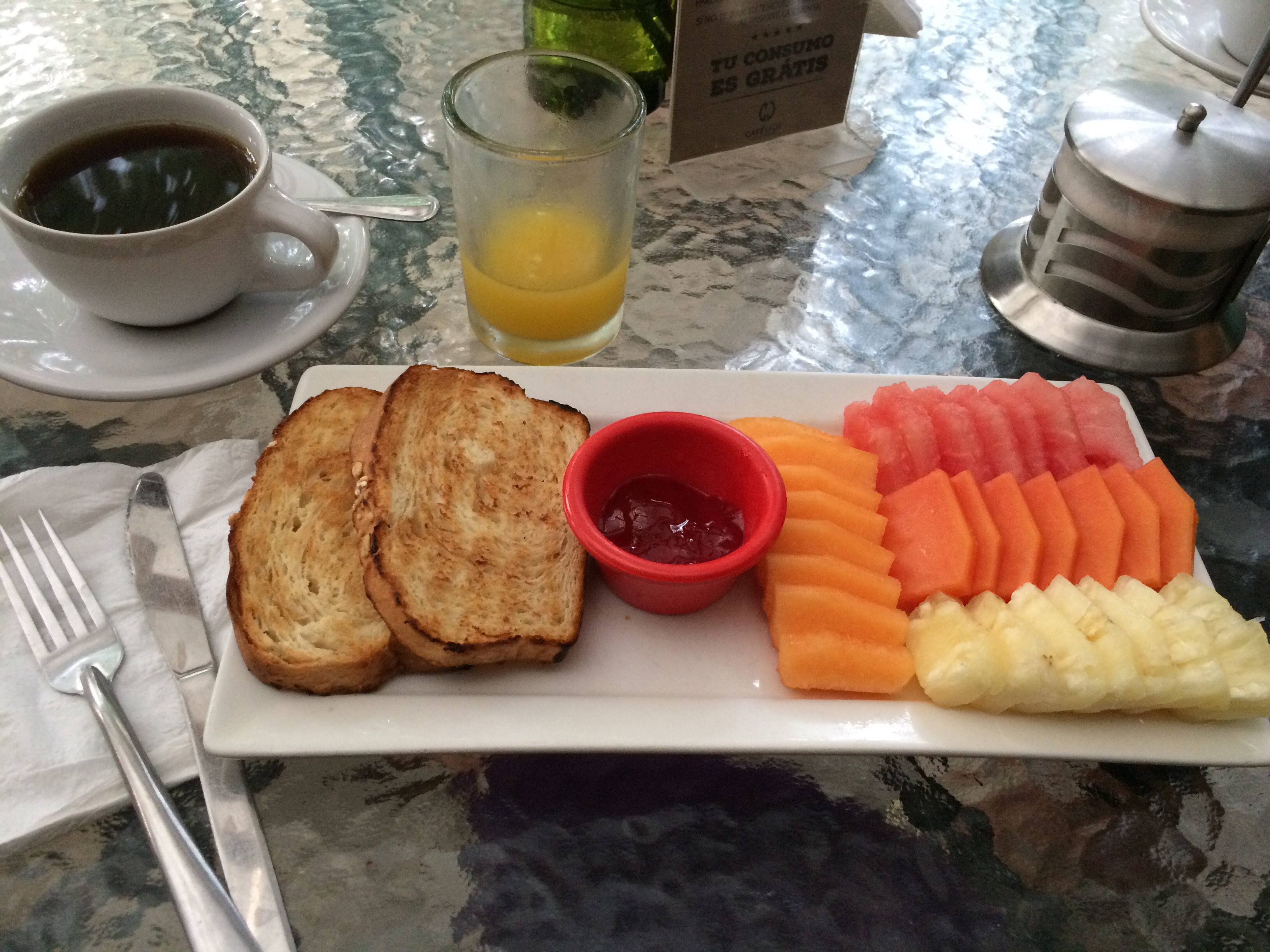 Breakfast before leaving Merida was in the hotel – fruit, PB and toast.