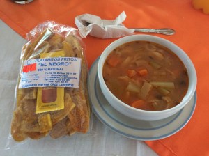 We stopped in the state of TABASCO (!!!) for lunch at a truckers/bus stop kind of place. It was pollo this and carne that but there was also one soup – like a minestrone with veggies and pasta – that they assured me was 100% sin carne.
