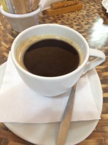Breakfast the next day was a little coffee place diagonally opposite the hotel. Cafe Americano – check. Very good.
