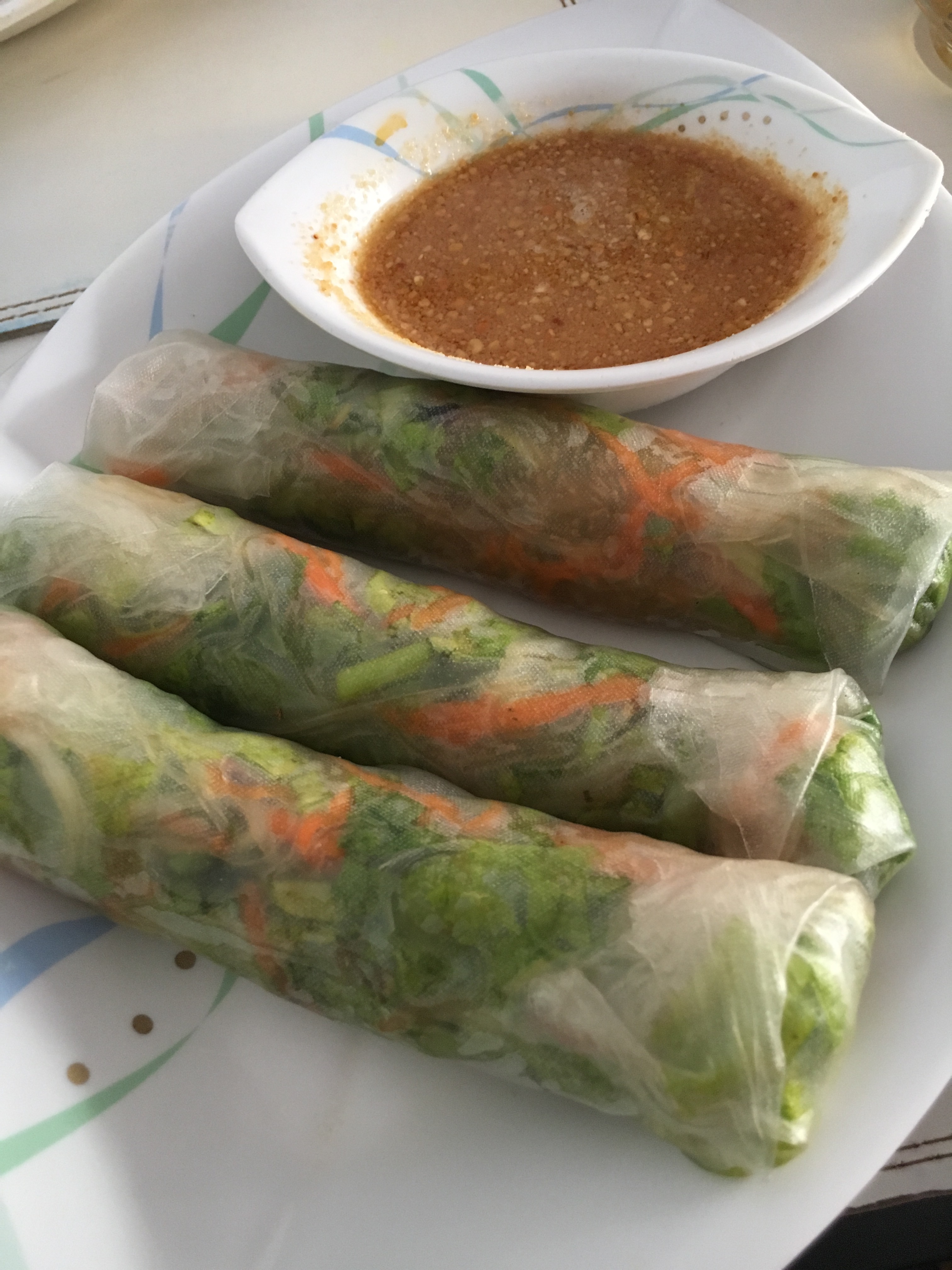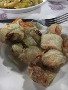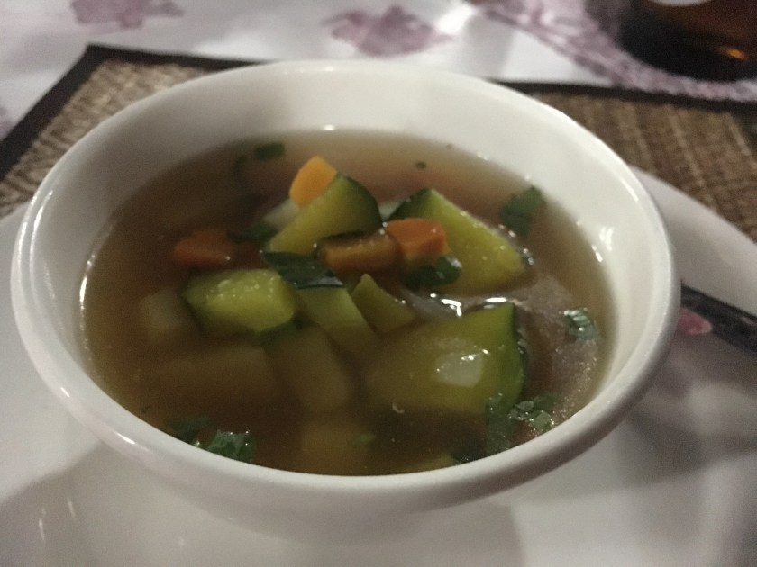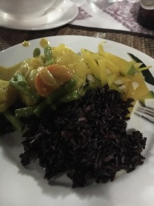 Dinner the previous night was included too. I tried the local Lao beer – very light and fresh tasting. There was another soup to start off, similar to the minestrone at lunch but this had potato. Just as delicious. Rice paper deep fried spring rolls – when these babies are hot and crispy (as these ones were) they are super yum. Crunchy, soft and an excellent peanut sauce.