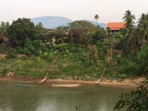 By the time we got to Pakbeng it was 6.30pm and minutes before a spectacular thunderstorm – pouring rain, lightening and thunder – the works. BKV Villa is a 3 minute uphill (and I do mean uphill) drive from the banks of the Mekong. And the reward for being up so high? Stunning views.