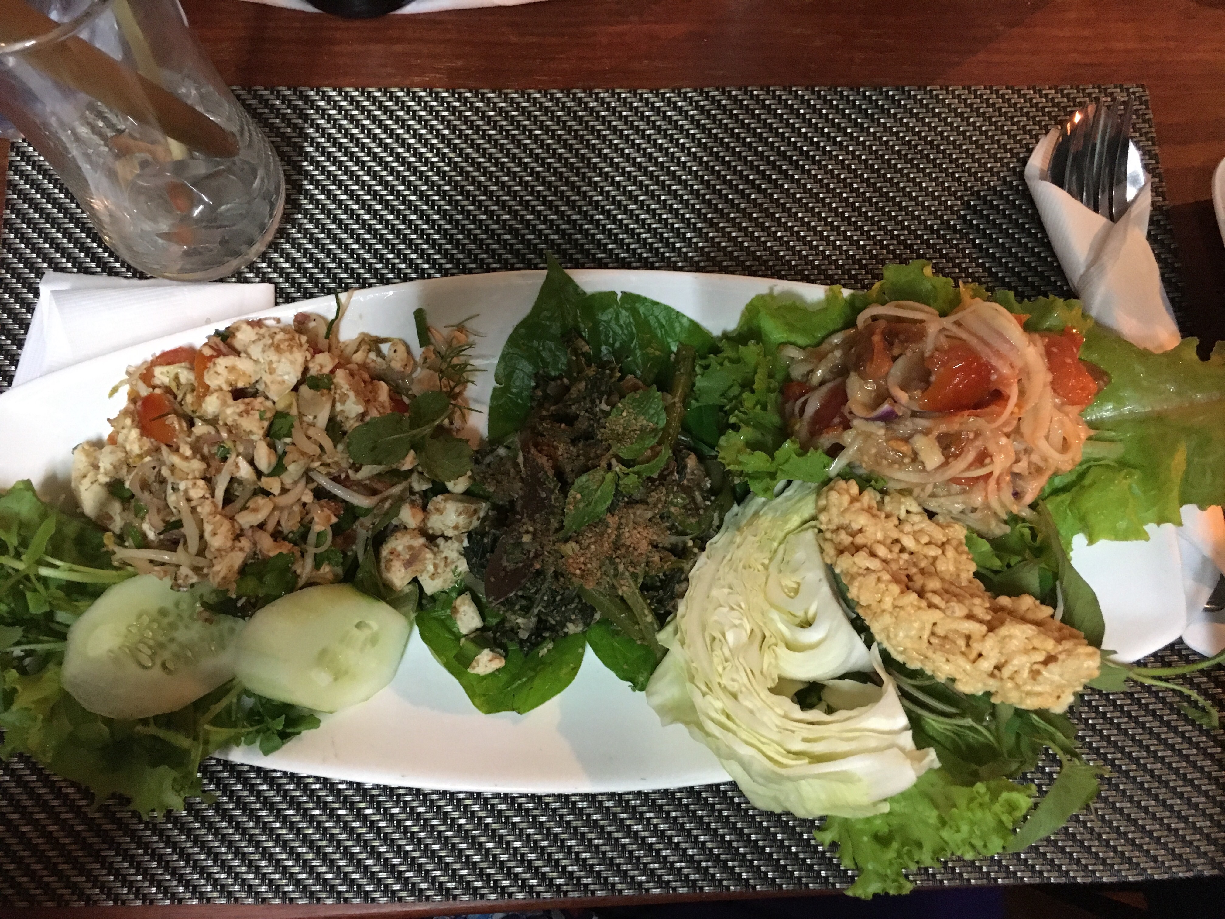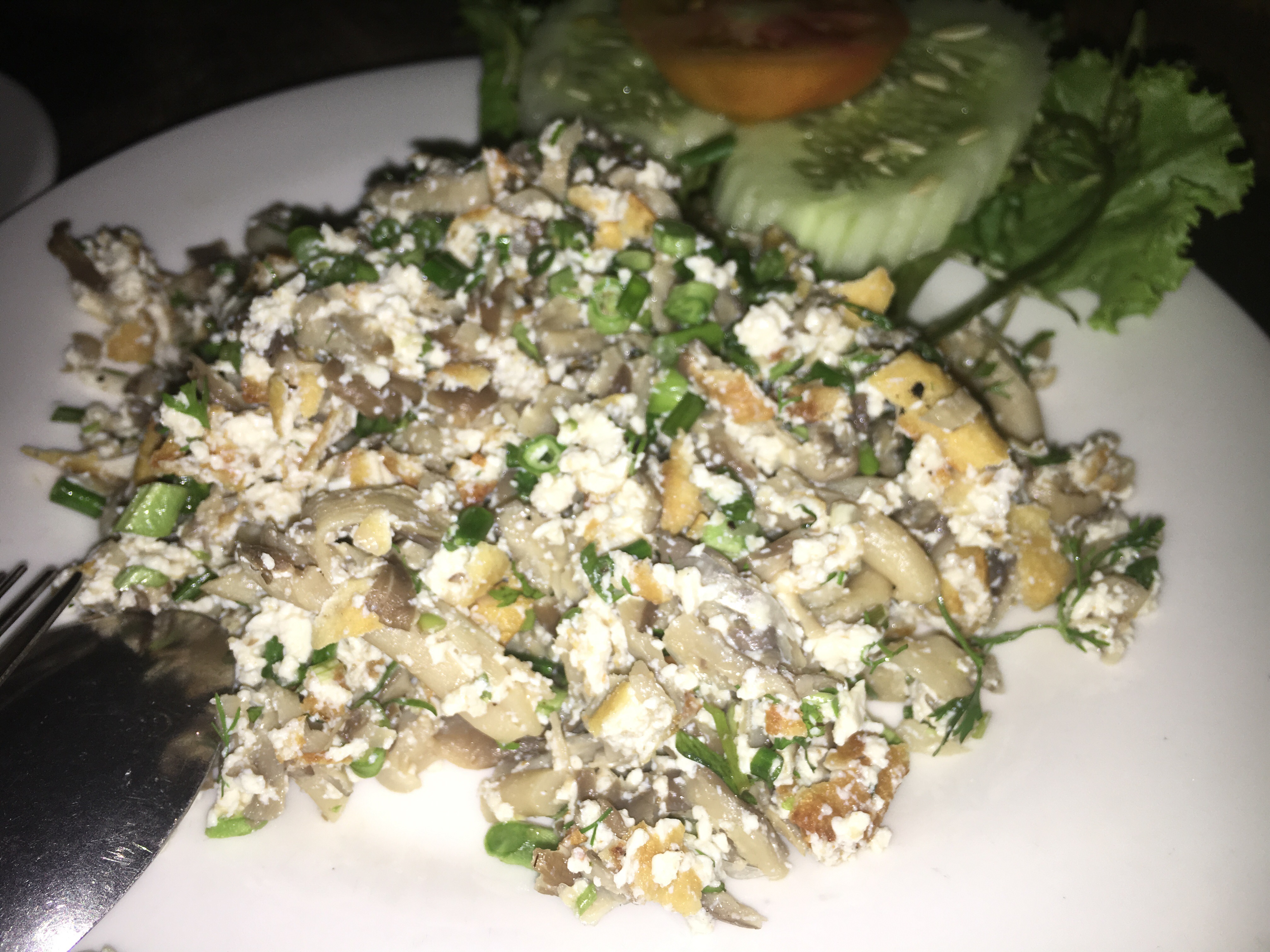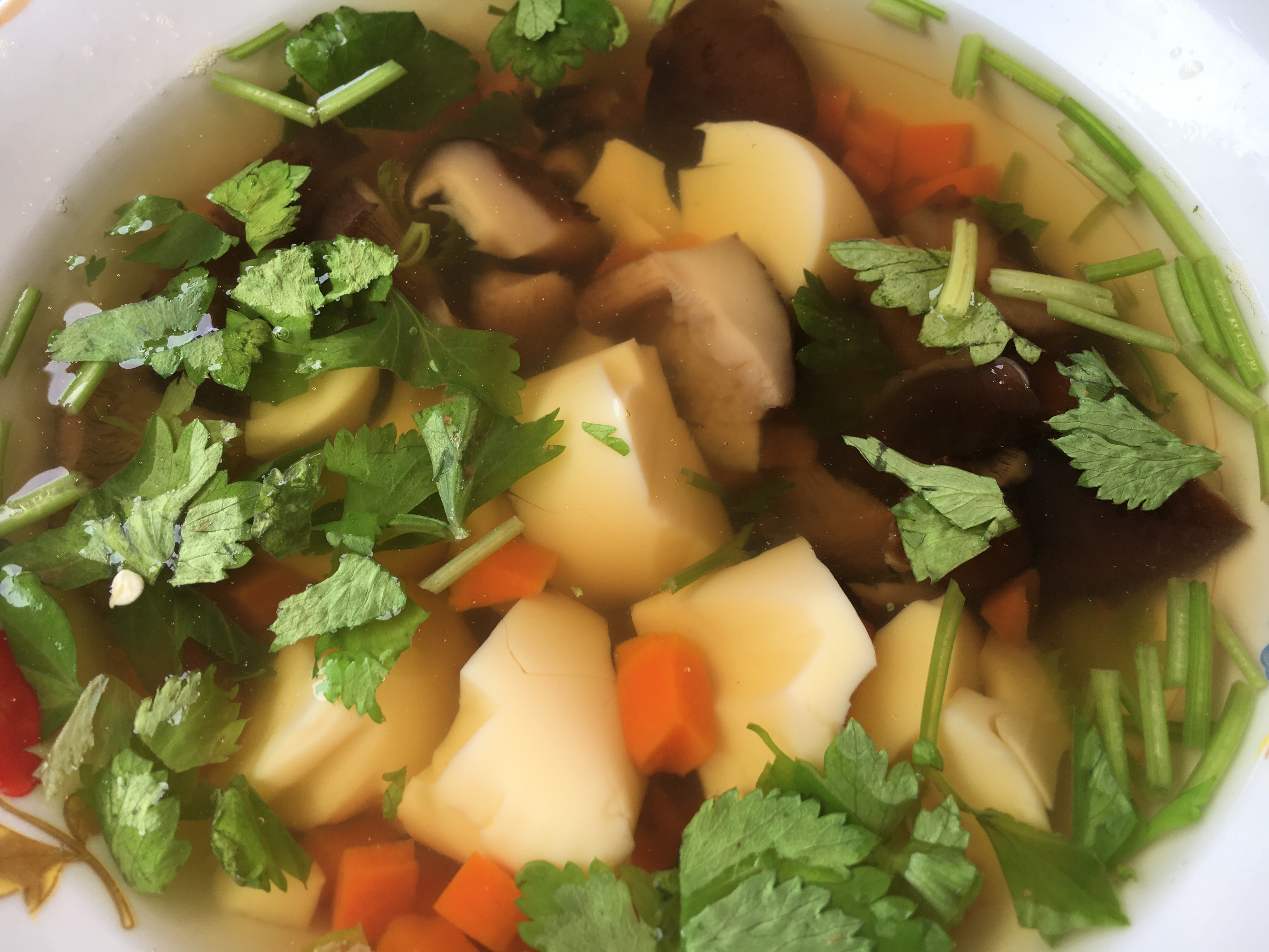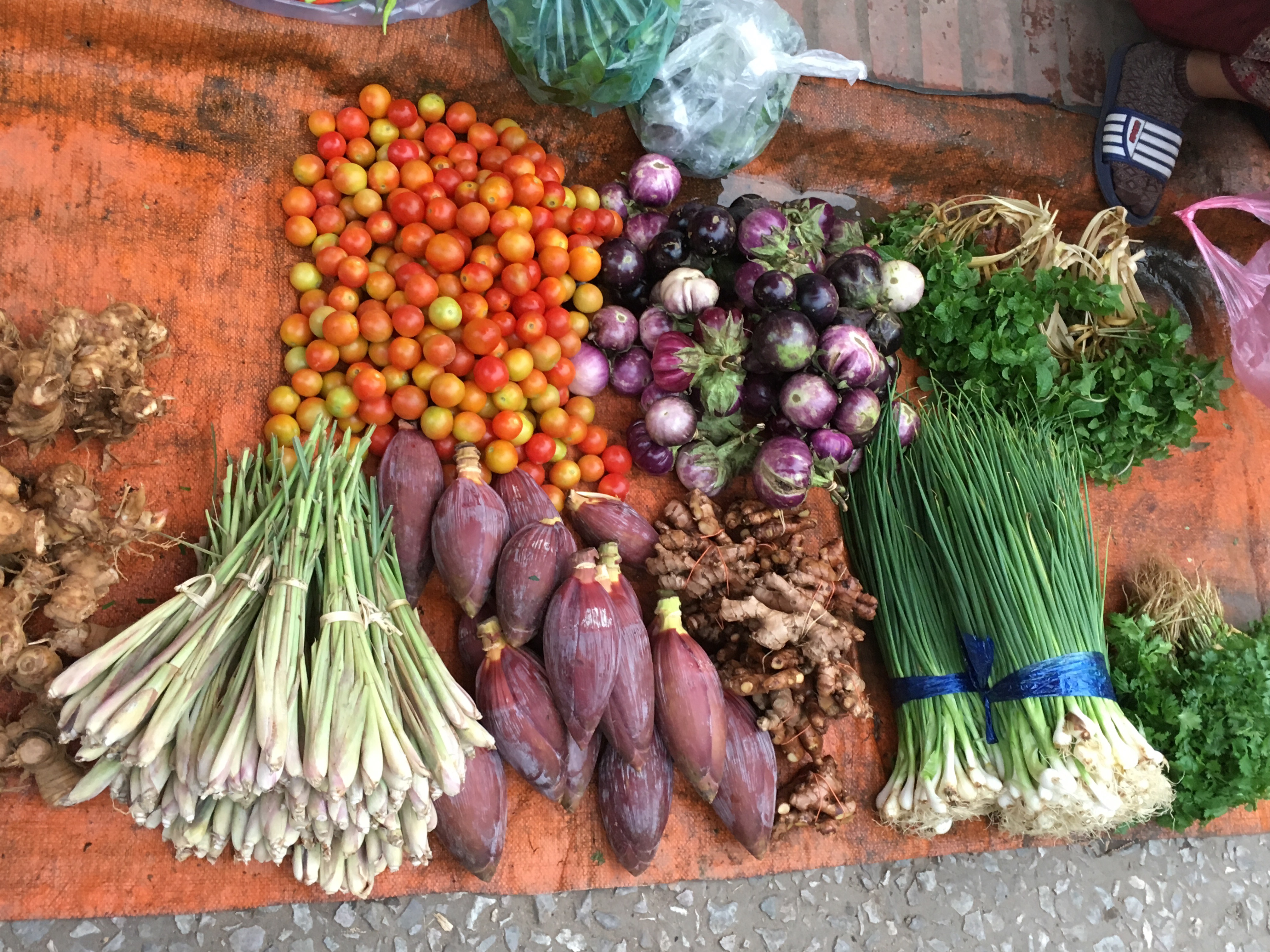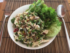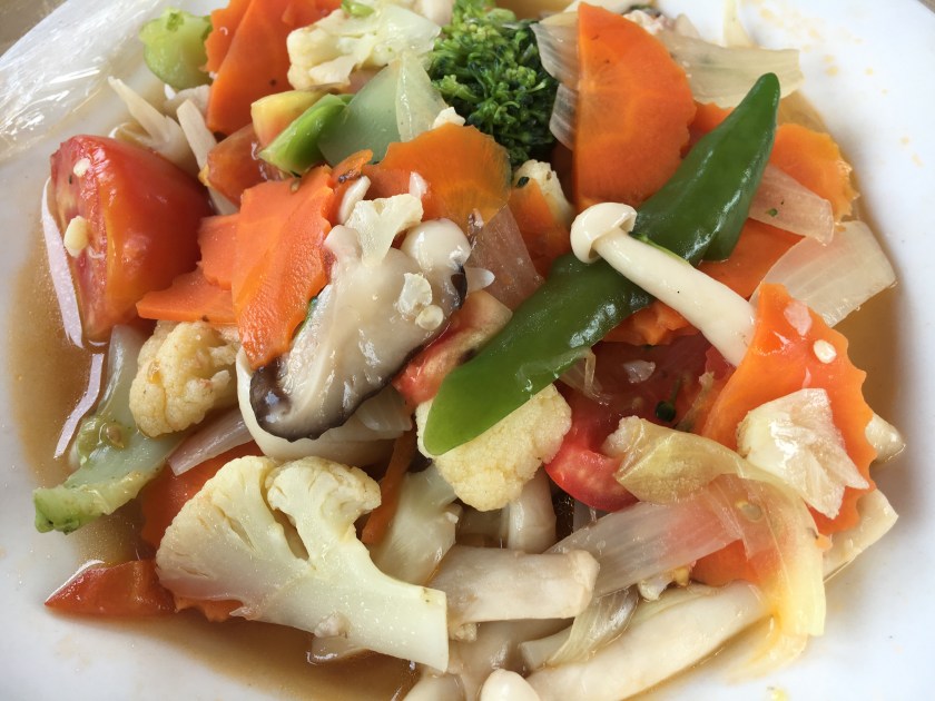Lunches were really good. One day we had a Laotian Minestrone with fresh silken tofu – jam packed with veggies – carrots, mushrooms, pumpkin and fresh herbs followed by a veggie stir fry with mushrooms, carrots, onions, chilli, broccoli, cauliflower, tomato. Excellent with a bit of rice.