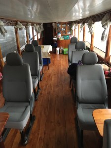 Watch the same scenery going by for 9 hours a day for 2 days. It was very beautiful but what struck me was the lack of wildlife in the area! There were a handful of egrets and sea ducks, but absolutely nothing else. This river was like the Rio Dulce in Costa Rica – whereas that one was teeming with birds, animals and reptiles, this one wasn’t. What I did see a lot of were cows, goats and buffalos. Hmmm. What I liked though were miles and miles of forest and greenery.. hope that remains…