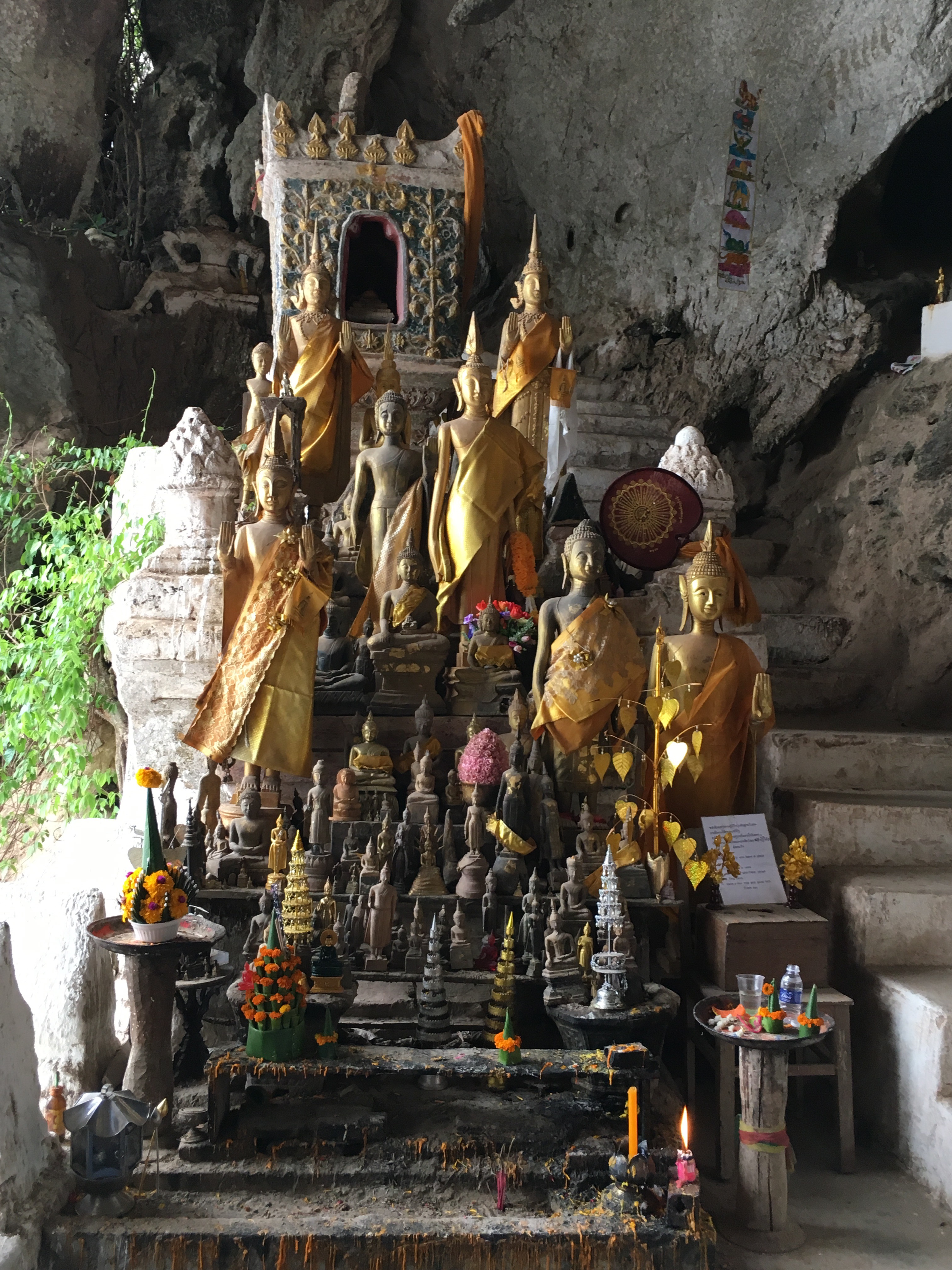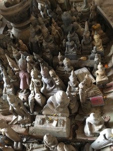 We also stopped by the Pak Ou caves – there are two, and upper and a lower cave, lots of steps but all very civilised with handrails and proper steps. The upper cave is in complete darkness, I needed a torch to get around. Lower cave has steeper steps and is better lit. I loved visiting these caves, and it was interesting to understand the various Buddha positions and what they all mean. Hands out in front? No violence, thank you. Hands in lap? Meditation posture.