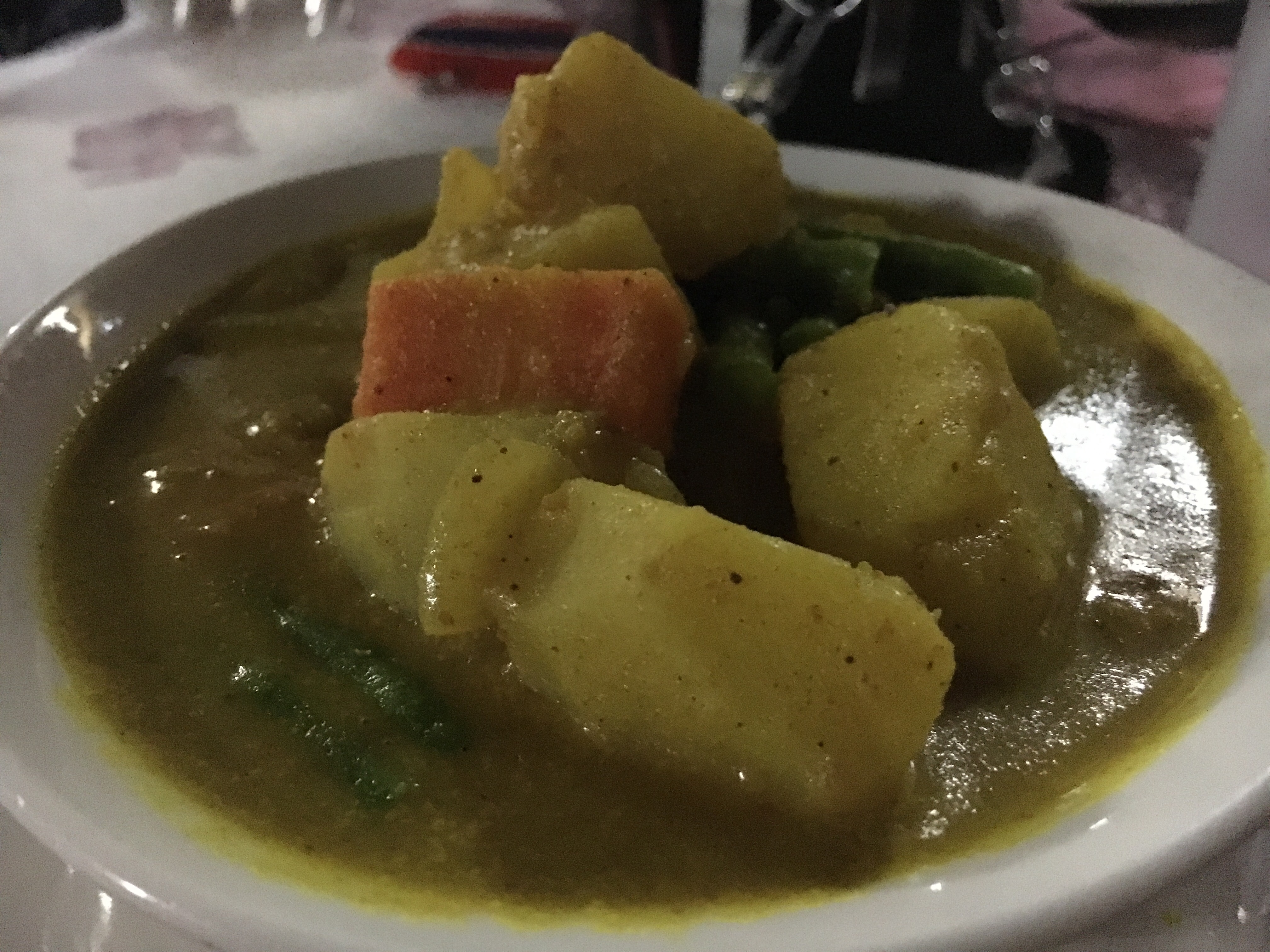 I got stir fried pumpkin (omnis got the same but with oyster sauce). But the winner of the night was this yellow coconut curry with potato, carrot and green beans. Accompanied with some purple sticky rice it was a super meal. That curry was so good that even the omnis were fighting over it. Maybe their Buffalo Laap 😔 didn’t hit the spot.