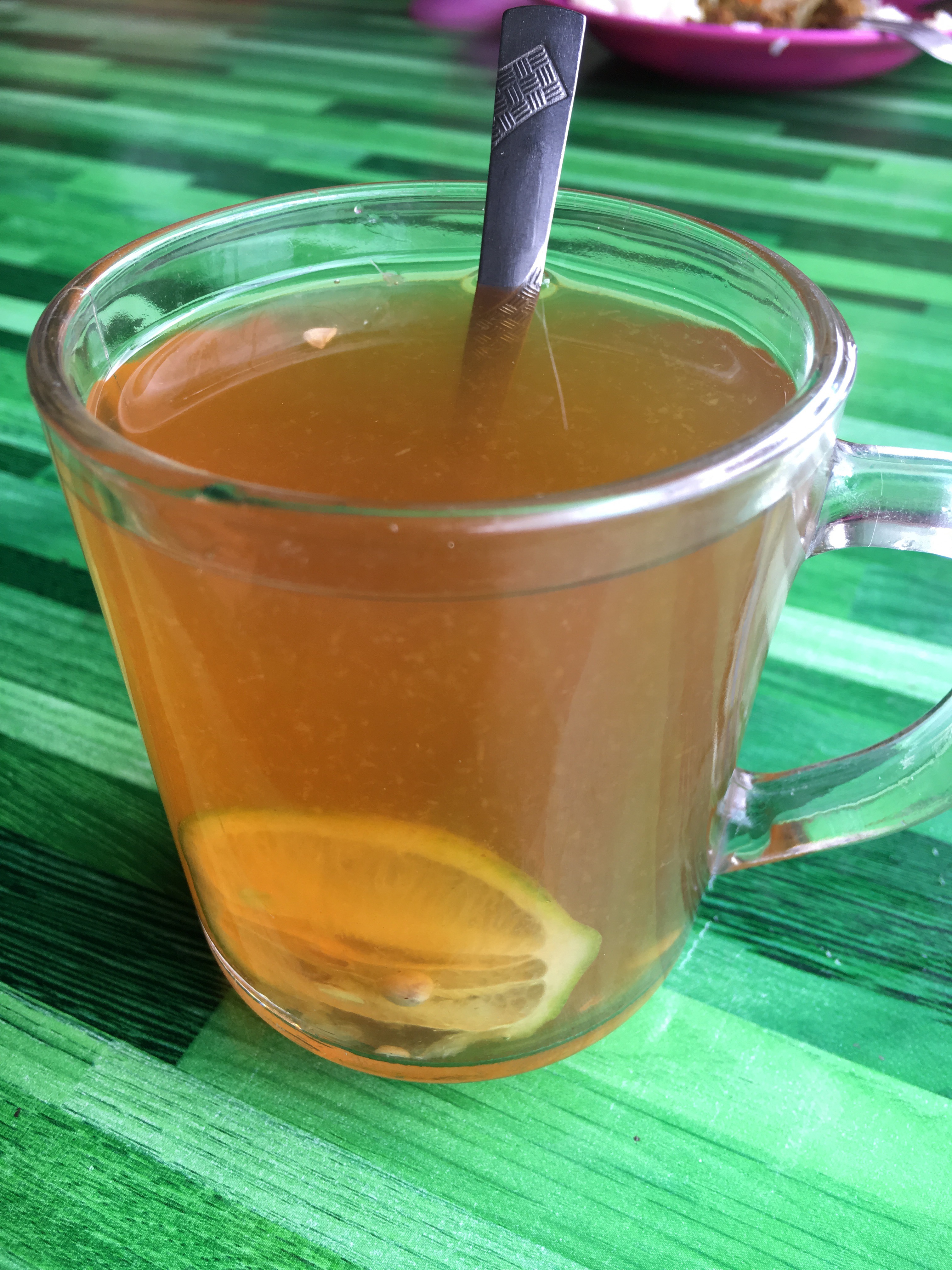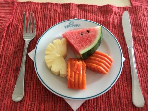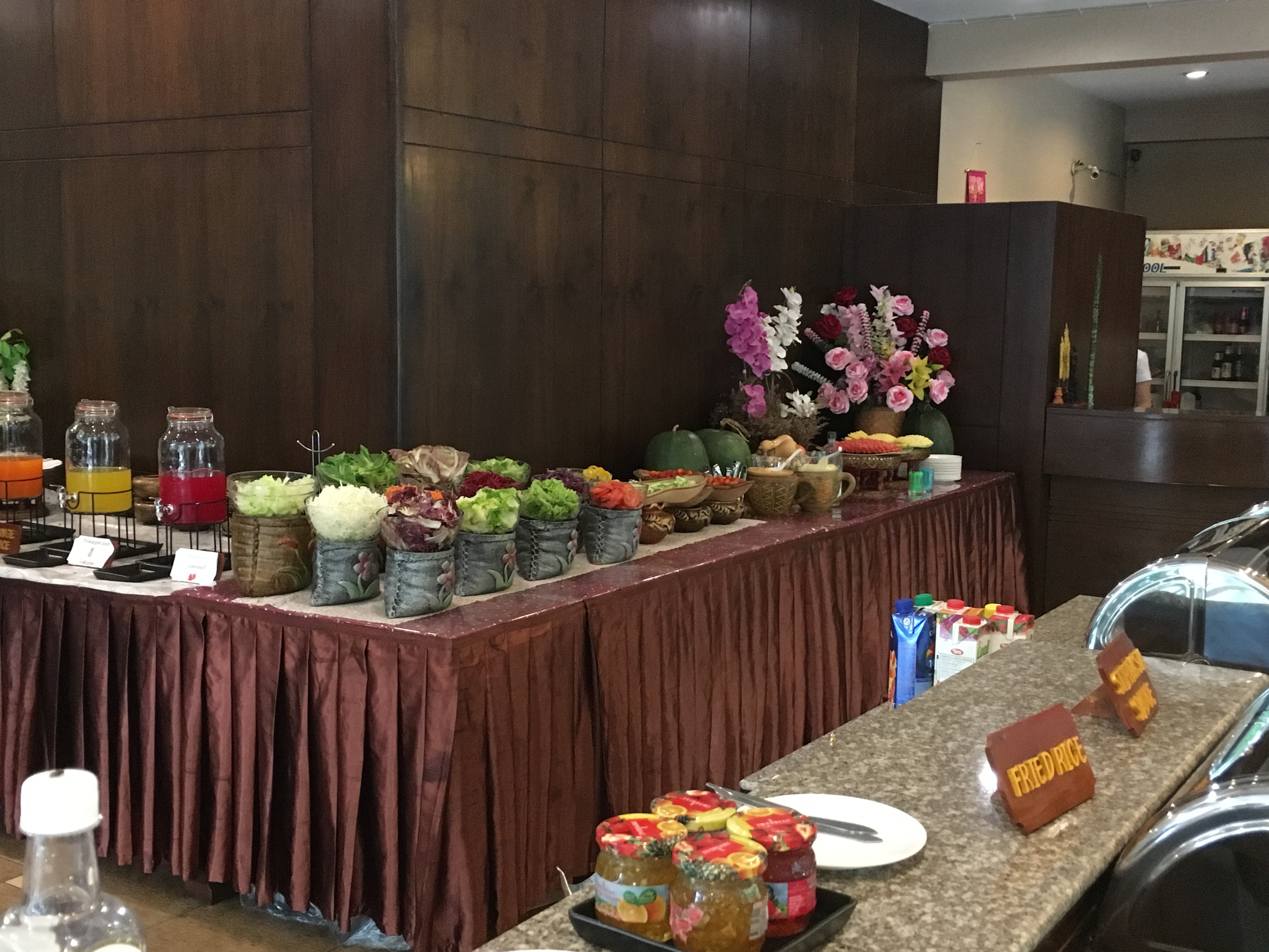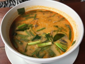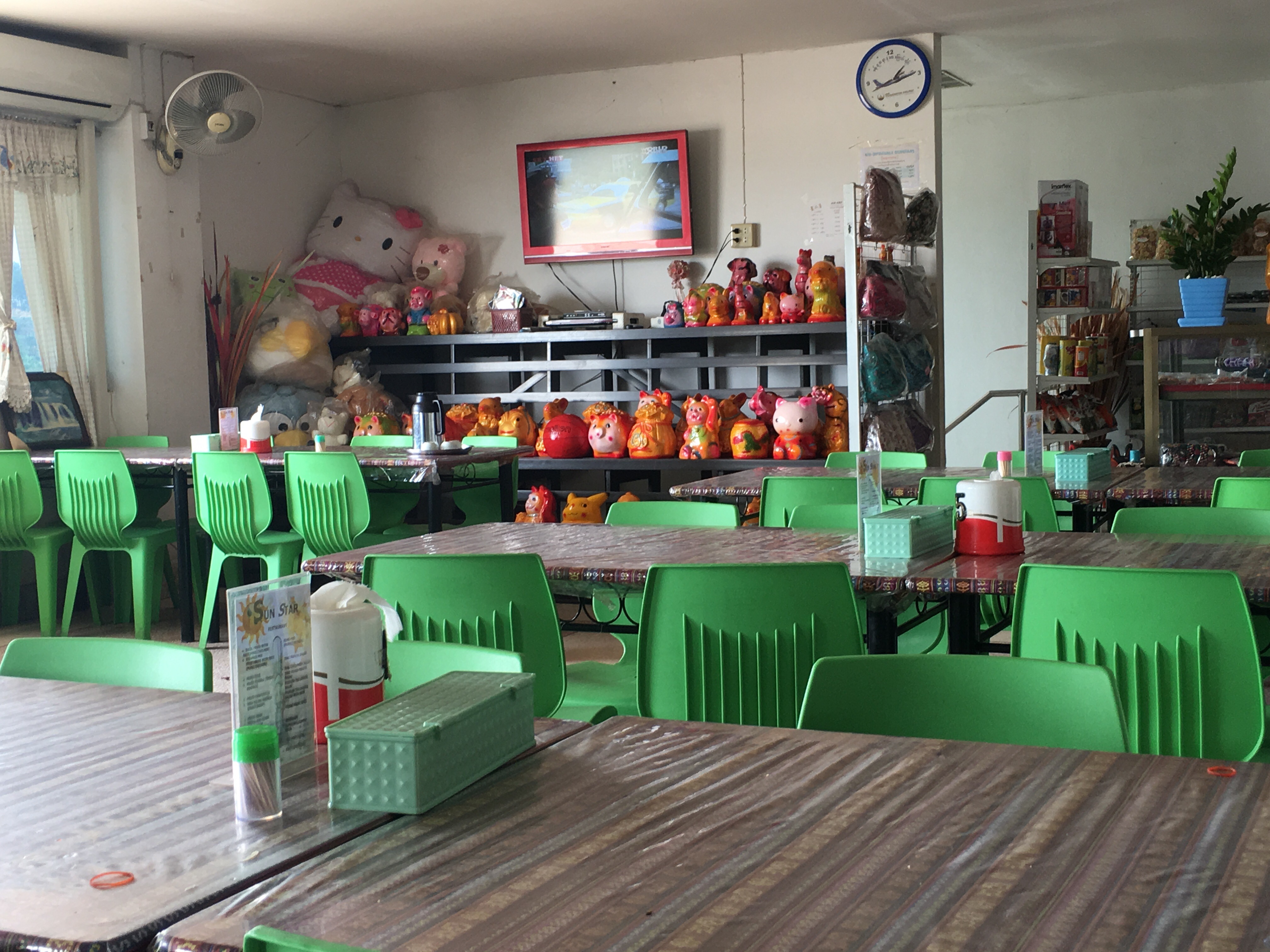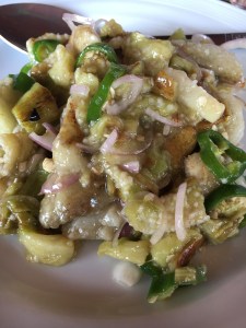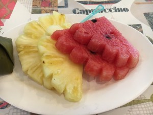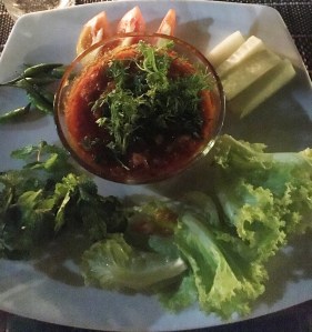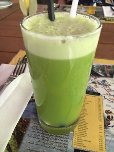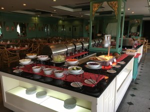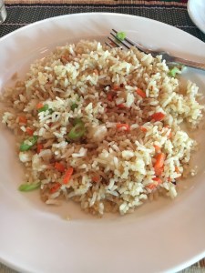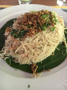 Lunches were varied. On the drive down we stopped at a roadside Malay restaurant where they had at least 16 dishes – ALL with meat or fish. My lunch was a cup of lemon tea. Appropriate since I was coming down with a cold. NOOOO! Other lunches? Once in the Seri Mutiara Taman Negara resort – mainly because it was closest to the park entrance. I had a stir fry vermicelli noodle dish – alright but too many noodles. What went down well was the fresh, unsweetened celery, apple and cucumber juice. BLISS. Another simple lunch was at our stop on the river ride. Simple lunch of baby bananas and Nasi Goreing – fried rice hit the spot. Delicious – and even more so because of the surroundings with all the drangonflies and butterflies flitting about.