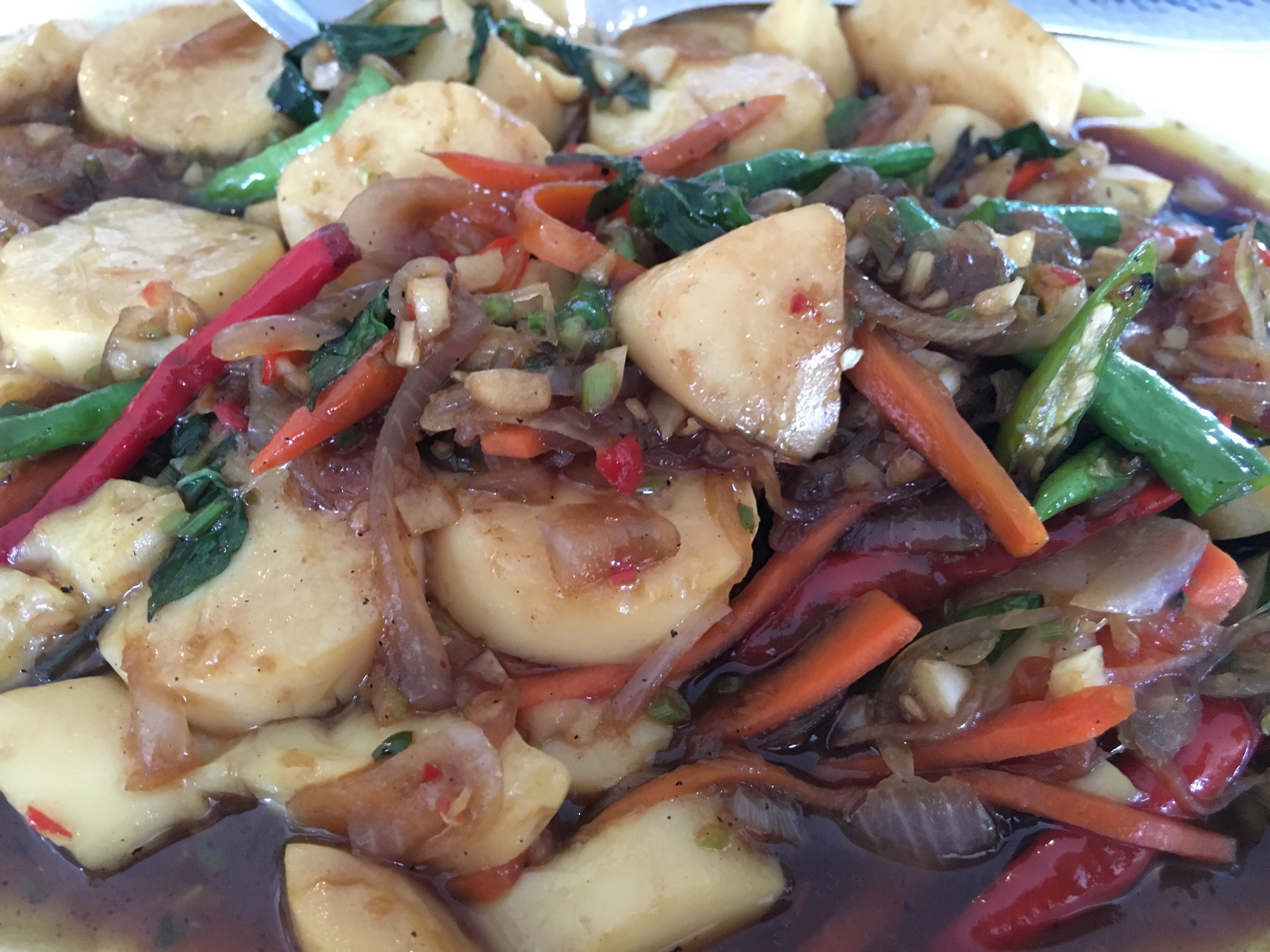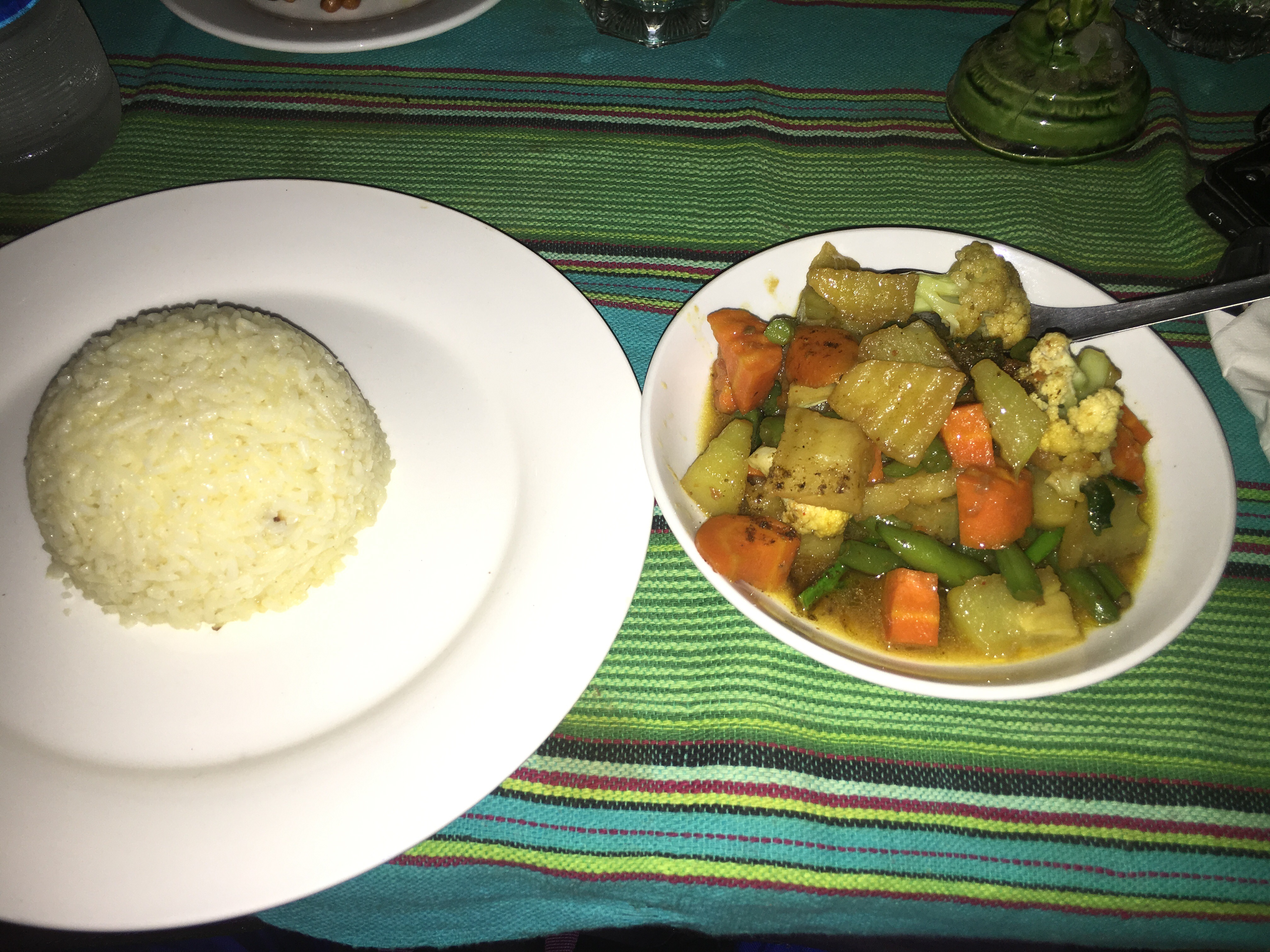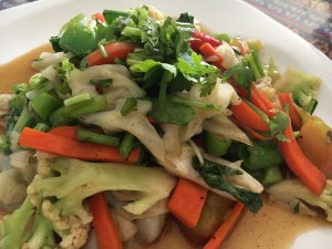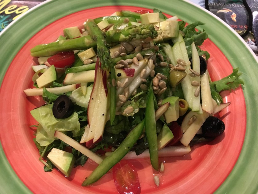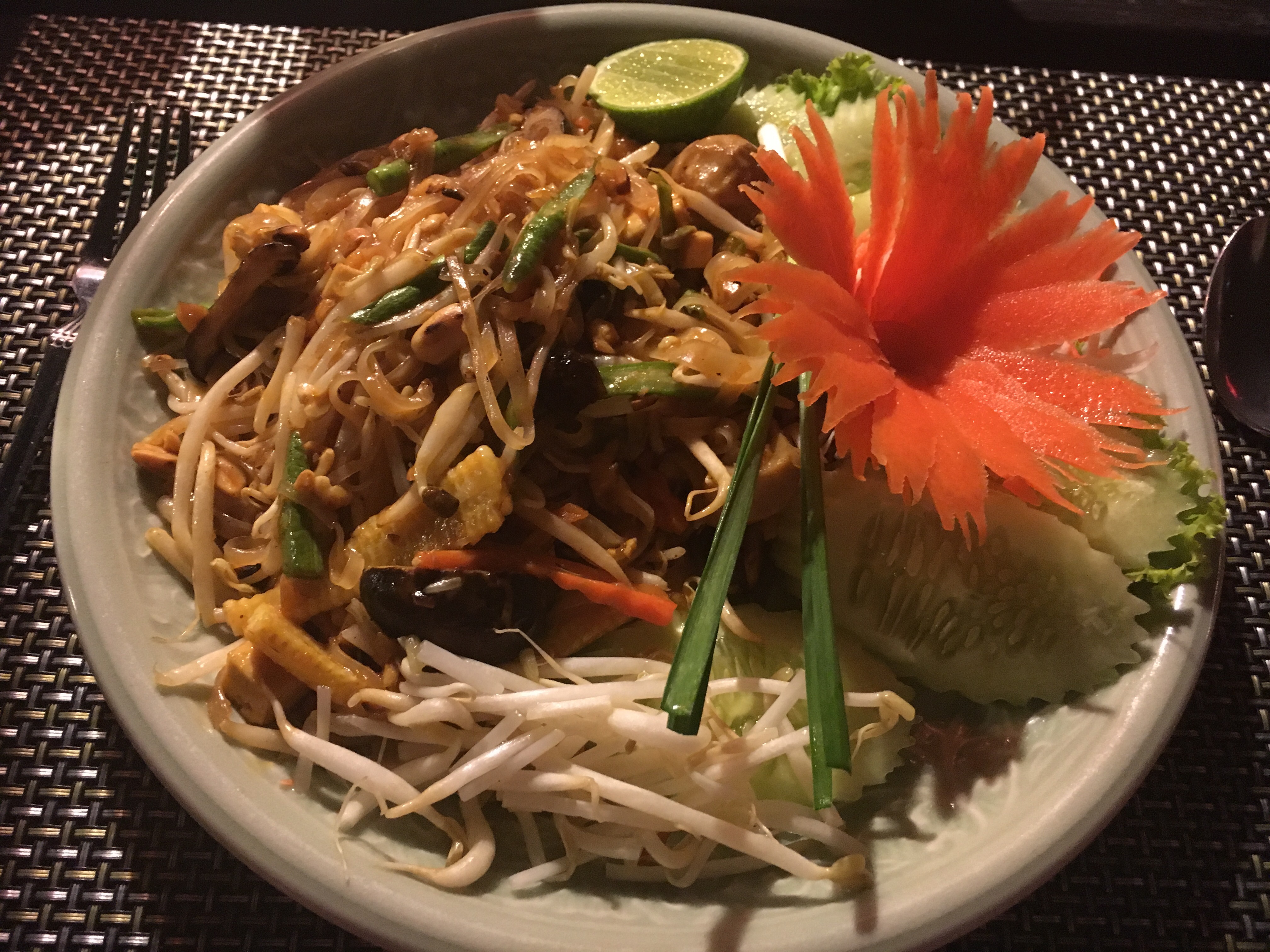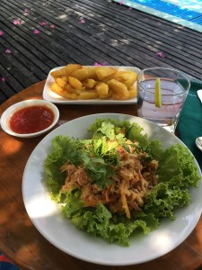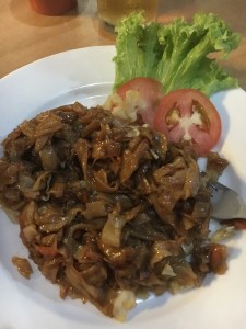 Dinners? There are lots of floating restaurants on the river front, and the Family Floating restaurant was the venue for the night. I had a carrot juice – lol – watered down and super sweet, and an excellent veggie stir fry with oodles of fresh ginger. Spicy, peppery and crunchy this was exactly what my system needed. We went back to the Mutiara resort for dinner and all I wanted was a salad – no rice, no curry, no spices. And I got it (along with another fresh juice). Lettuce, apple, peppers, olives and and and – Avocado with sunflower seeds and lime. Oh salads, I have missed you so much. This was sublime – nothing fancy, but flavours i hadn’t had for a while. I hoovered the whole thing. I also ordered a watermelon and gin – nice and refreshing. A perfect meal. This place is more expensive than the local places – but worth it as it reflected in quality and portion size. Final Dinner – the plan was to find another local restaurant but the rain started again and it was torrential – to the point that you could not see anything a few feet ahead of you. So we stayed in the hotel. I had a vegetarian mee (noodle) goreing. Very moreish, very delicious and very edible.