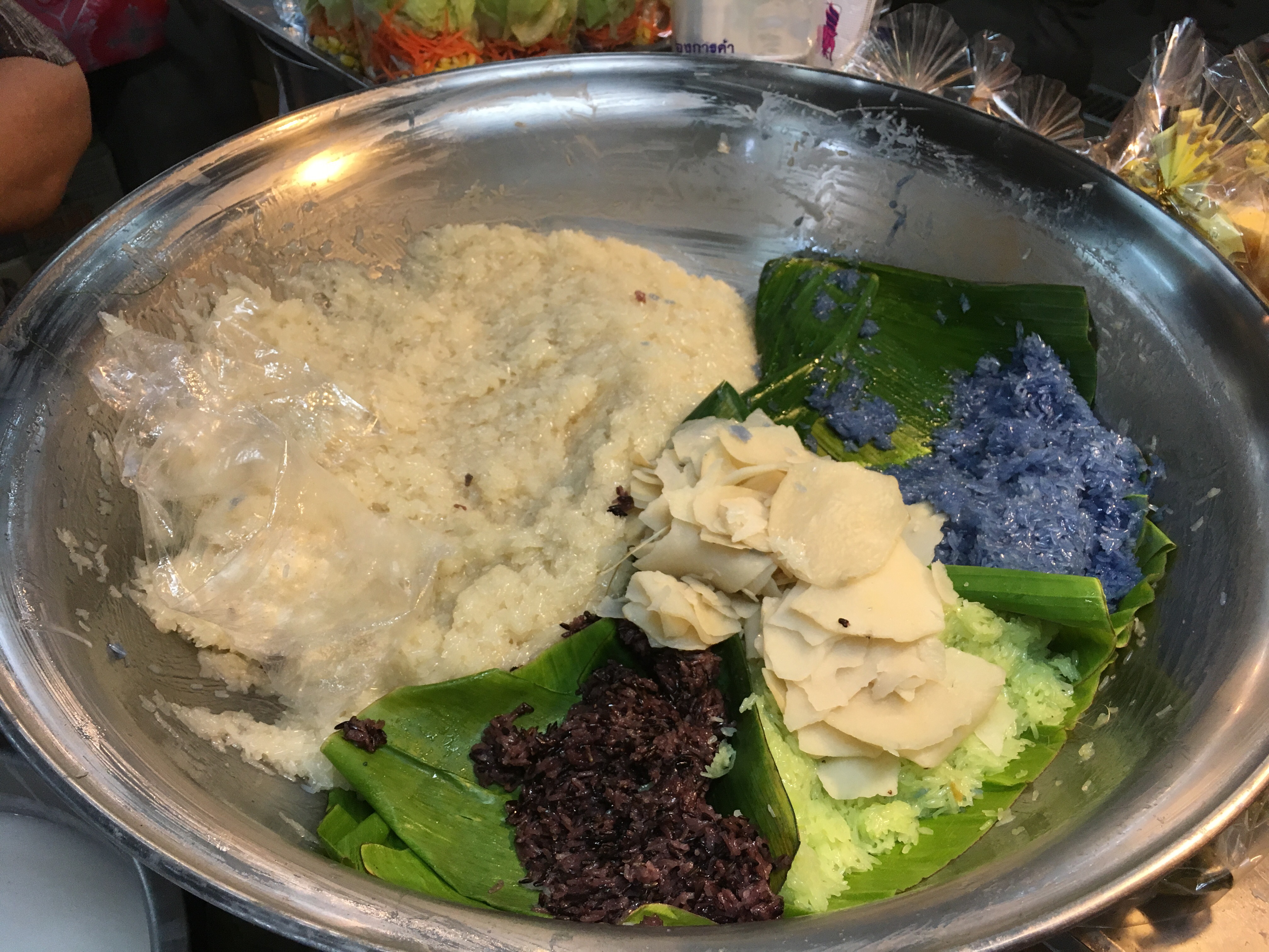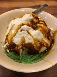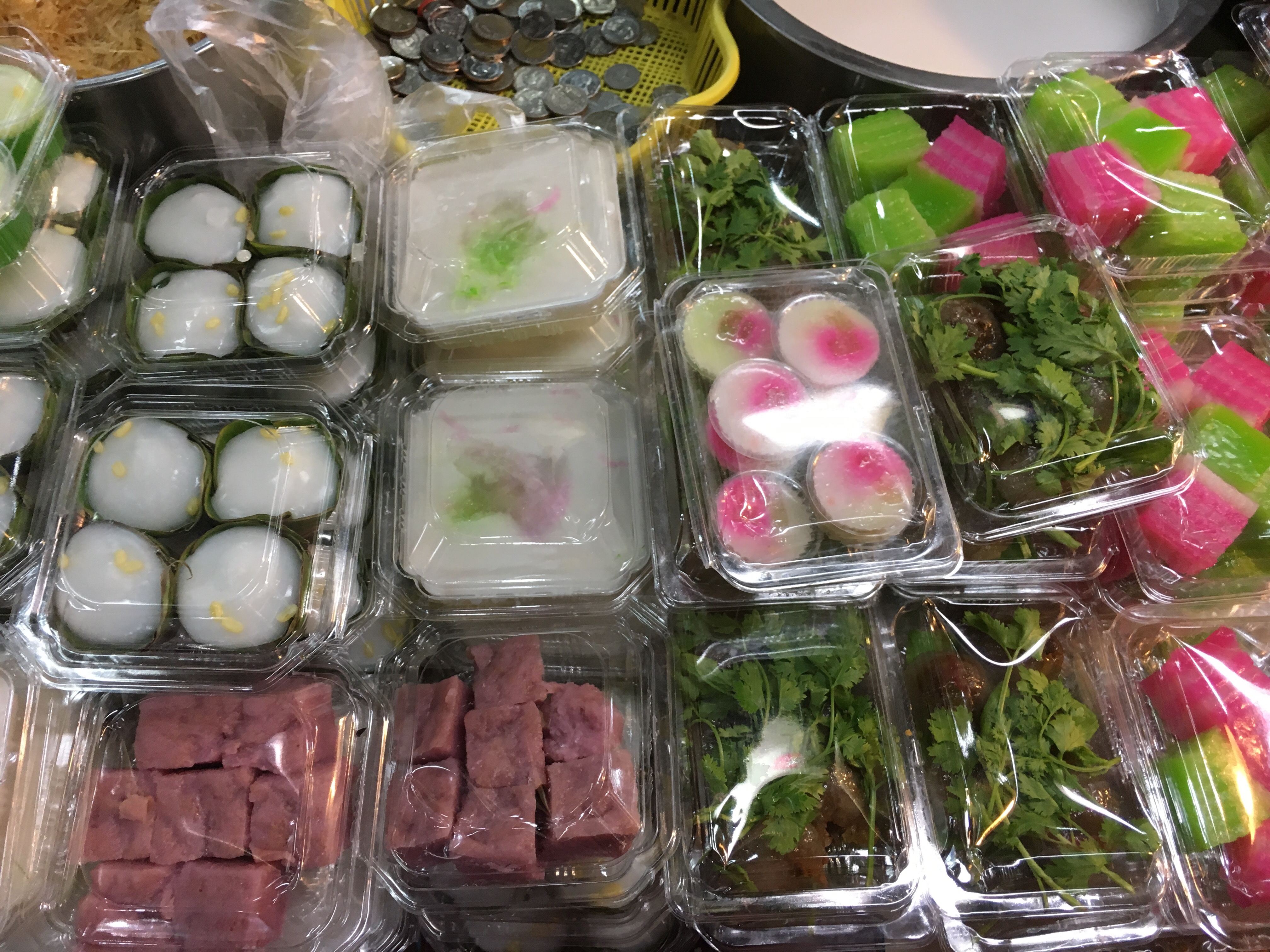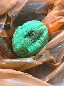 Snack update. Well well well. In terms of savoury snacks, Malaysia is full of funky flavoured crisps – some with quirky names – but why why why do they have to contain so much crap and MSG? I’ve been having Lays plain crisps when I can find them – which is rare. My other staple are nuts. I do try and get local snacks when I can – like when I found these savoury pastries (that look identical to a sweet Indian pastry) stuffed with potato. Like a samosa – crispy, soft and super tasty. And kuih – traditional Malaysian sweeties. These ones were made with pandan, coconut milk and rice flour. Pretty chewy – which I don’t mind as I like mochi.. Delicious and not to sweet. And less than a ringgit each! Whoo!