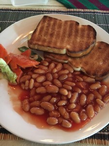 I’m beginning to realise that breakfasts in Malaysia, however extensive, do not cater for the likes of me – it would be hard even if you’re vegetarian. BUT (and a big one at that), baked beans are prevalent (whoo!) and so is peanut butter. Sadly the peanut butter is just OK – full of sugar, salt and oils (yes, palm). So I’m trying to stay away from it, and I tried one brand for breakfast – one bite and I was done. Thankfully the beans saved the day. Non Brits can’t understand the appeal, but beans on toast for breakfast? YUMMO.