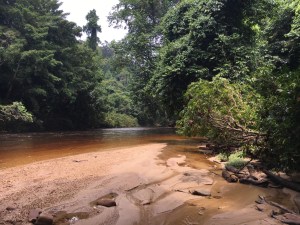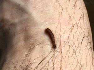 On our way back, we stopped to get off the boat and visit the Old Man of the Forest – the biggest tree in the national park. So the guide suggested to go into the forest barefoot as the path from the riverside to the tree was very muddy. Very good idea -it was a surreal experience walking in squelchy mud and in the forest barefoot. It was also grounding, humbling and very appropriate seeing that I was visiting such an amazing tree. And even more so that I was visiting the Old Man of the forest on what would have been my dad’s 70th birthday. On the way back we eased back to the boat, after wading through some water on the makeshift jetty, jumped in the boat, looked at my feet and, hello leeches! I had about 6 leeches all trying to get comfortable. Eugh. They were promptly taken off before they suctioned on – apparently once they start sucking you should let them carry on and let them fall off on their own – or the would will go on bleeding. Saying that, one macho boy decided to keep a leech on his leg – and we watched it grow fat – and even he was squirming but once it’s on it’s on. Eugh eugh eugh.