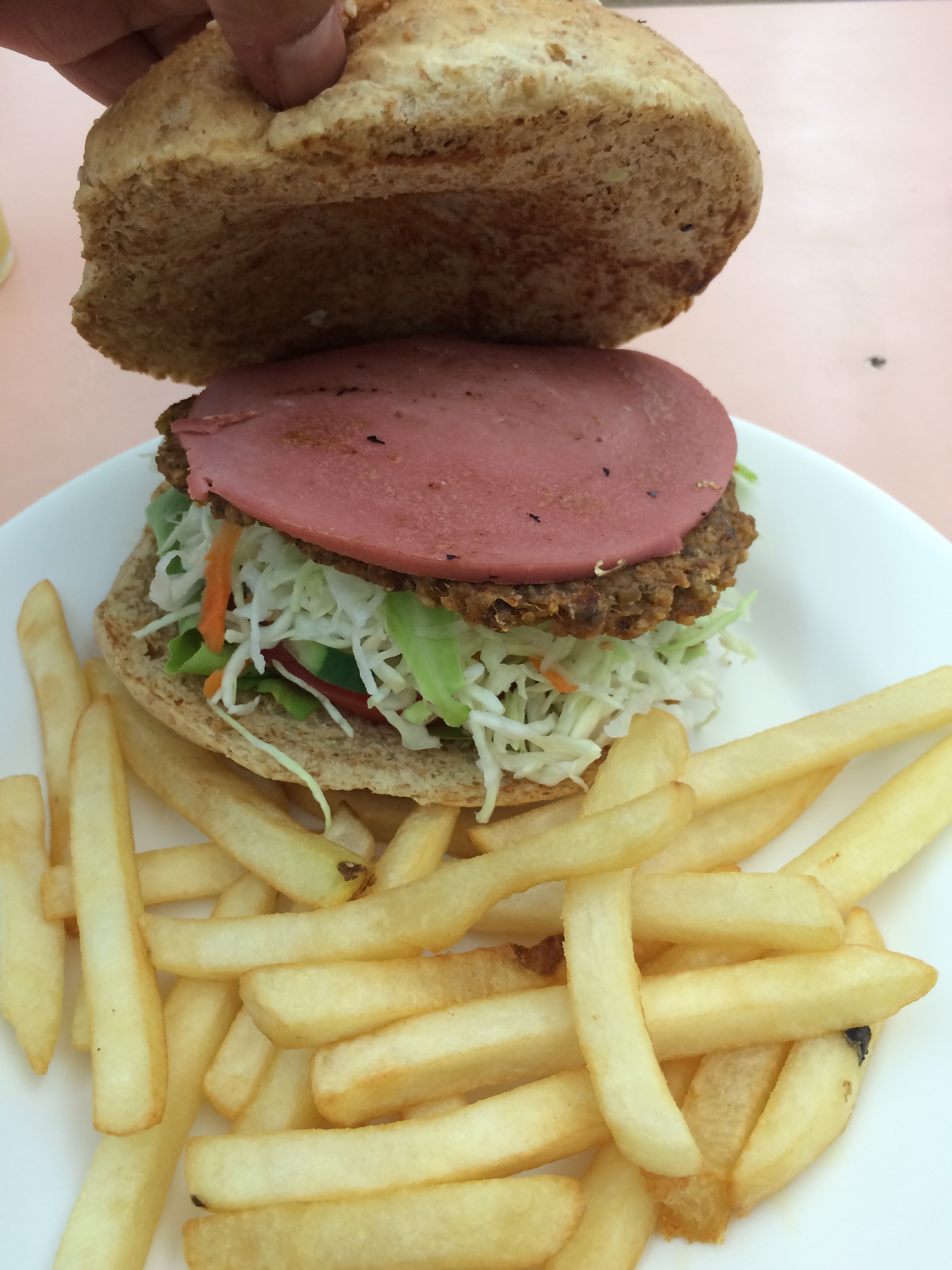 Next night – we went to El Avion, a gimmicky restaurant that has a bar in a plane. It was really cool in the plane and the Margarita I ordered was really good. Even in a restaurant like this, the only two options I could go for were either veggie rice (meh) or roasted veggie sandwich. I went for the latter and got a giant sandwich with too much bread. The veggies were really yum (after I added salt and pimped it with chilli sauce) – courgette, mushroom (which interestingly looks like meat..hehe), red pepper, tomato. I had those with the chips, left the bread. If you want to go here, go for the drinks, not the food.