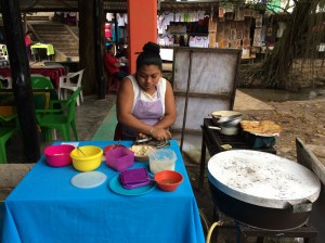 Our first stop for lunch was at Agua Azul, the beautiful blue waterfalls where there were about 100 stalls all serving the same thing – empanadas, 5 for 20 pesos. So I chose fillings of frijoles and papas (you could have had queso, carne or pollo too) – freshly made to order.