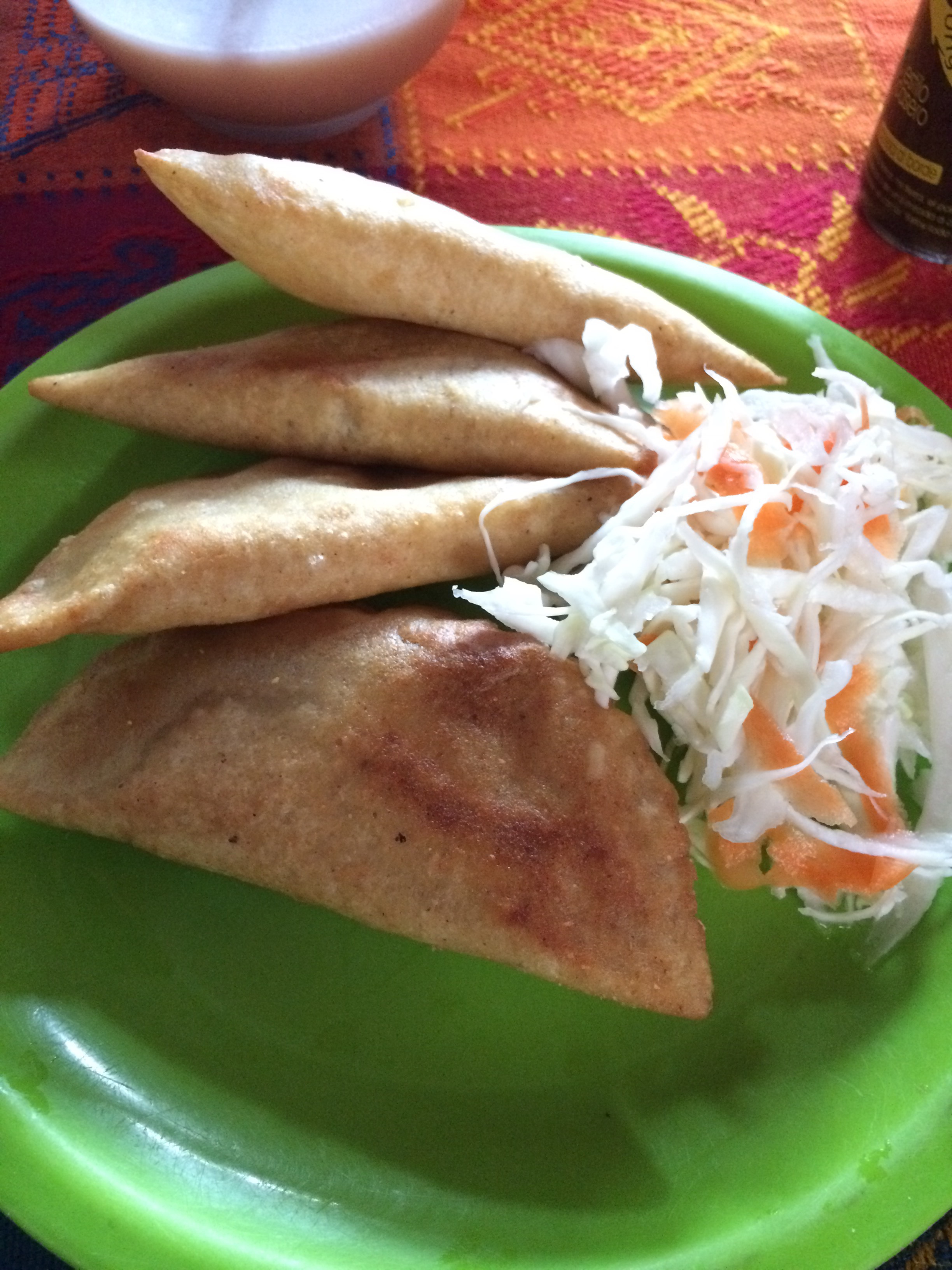 More filling than tasty (how can deep fried food be so bland? Well. It can), they were just ok and served the purpose they were meant for – to fill my belly. What I enjoyed most was the cabbage and carrot salad, doused in lime. Could have had just that for lunch!