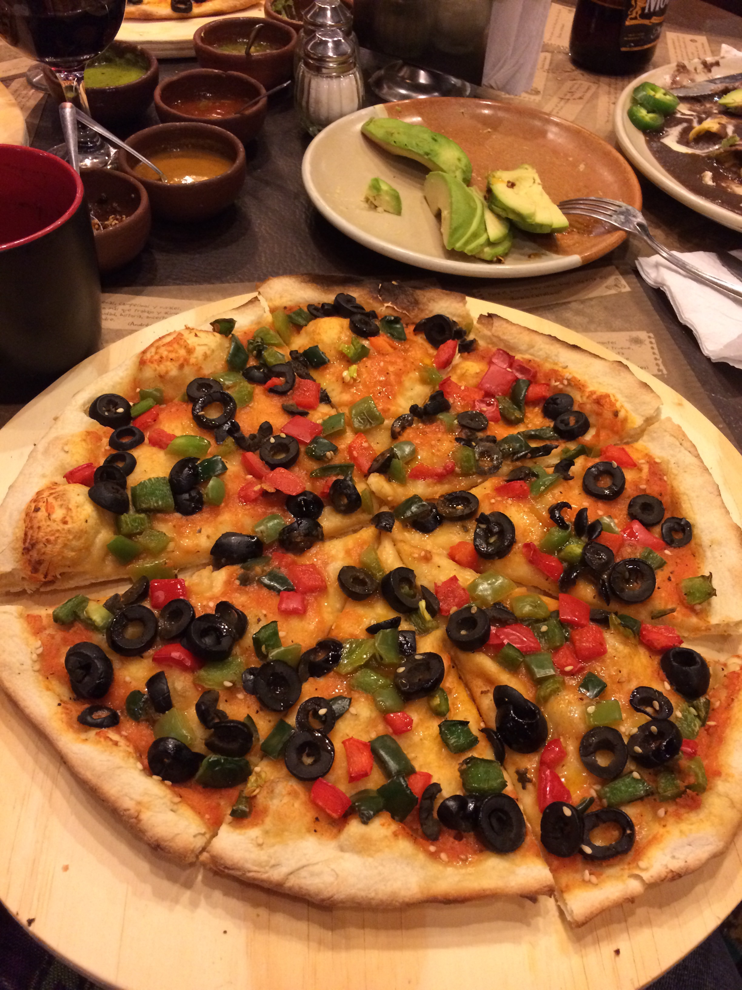 For my main meal? A pizza. MEH. Not a wise choice (I blame the cold), but the selection of salsas almost made up for it, along with the avocado, obvs.