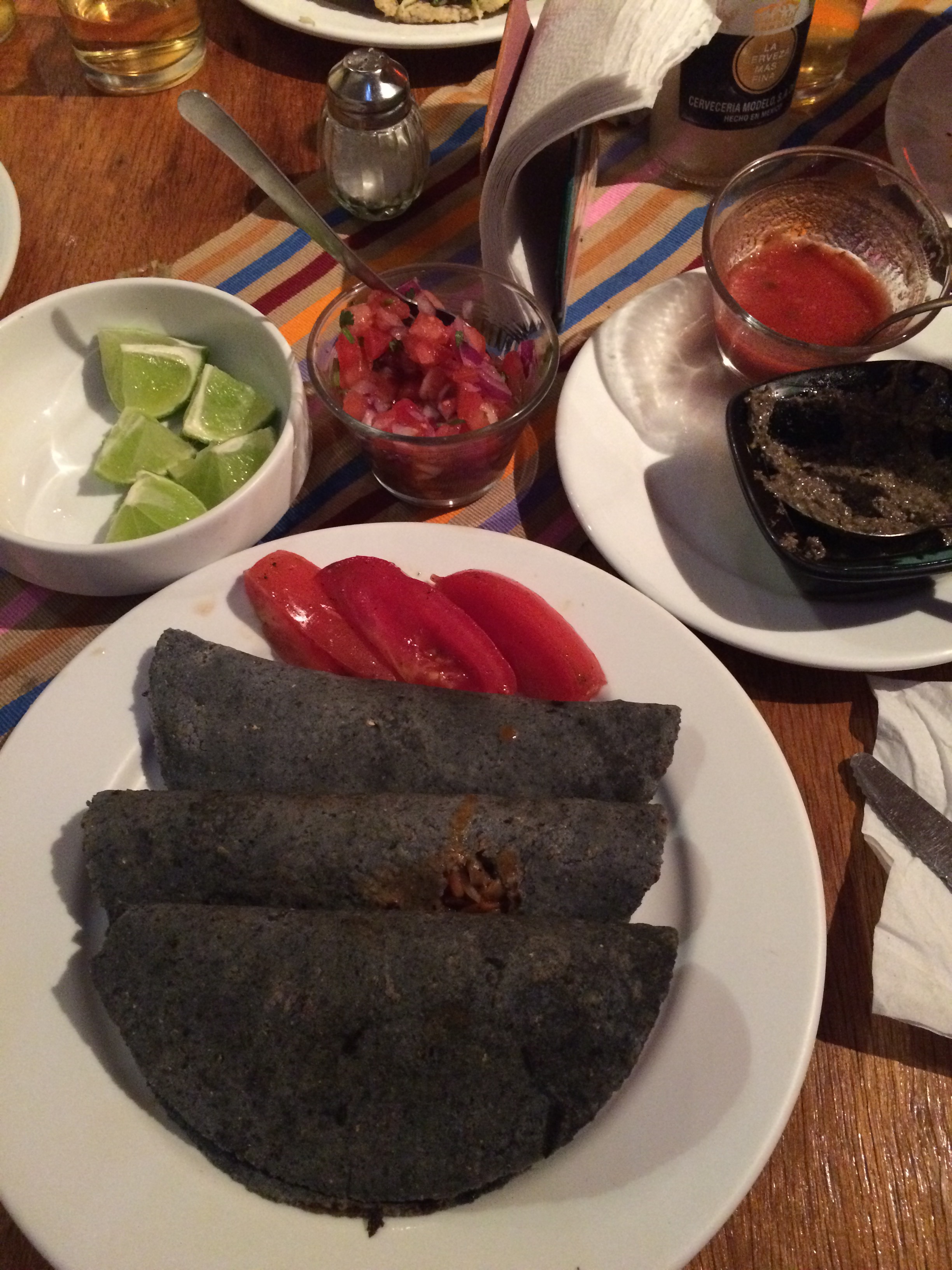 For mains, a stunning stunning stunning meal. Black corn tortillas, stuffed with mushrooms, carrots, onions in this wonderful sauce.