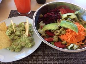 I went for a salad crammed with lettuce, beetroot, carrots, olives, avocado and peppers. Oh, and a side of guac. As expected.