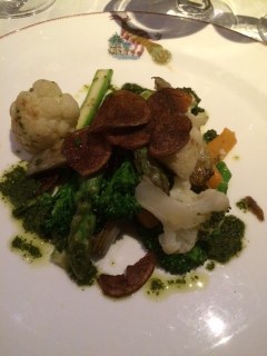 The highlight of the meal was the ajo blanco, dressed with grapes, beetroot, parsley and almonds. It was so tasty – not too garlicy, really creamy and the bits on top added little bursts of texture and flavour. Every mouthful tasted different – yum yum yum. Please order this! The lowlight of the meal, for reasons to explicit and nasty to mention here, was the roasted aubergine. It didn’t really look appealing, it had no seasoning and the texture was not nice, and the top half was undercooked, and I couldn’t taste anything in the sauce. The hazelnuts though, were excellent.