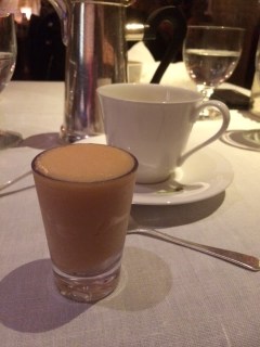 I had no room for dessert after all this food and the very tasty G&Ts (my dessert), but M ordered the coffee and burnt milk ice cream. Judging from the speed at which it disappeared and her expression, it was a tasty dessert.