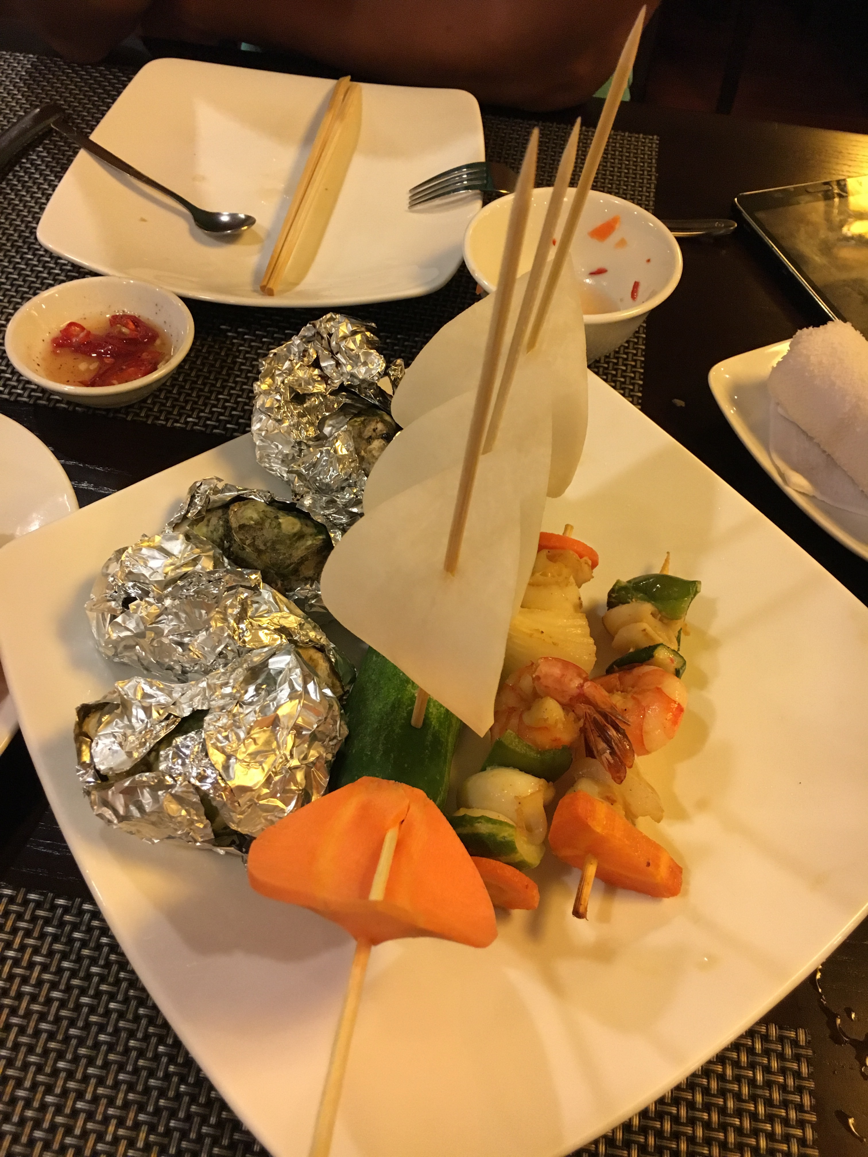 Dinner one night was at Red Garden, essentially a food court specialising in seafood. Everyone was in ‘food paradise’ as expected apart from me. There wasn’t much for me to eat. I had a seaweed salad (out of a packet methinks) and some spring rolls. I was still so hungry that I ordered a mango sticky rice. It was all ok, nothing special to be honest.